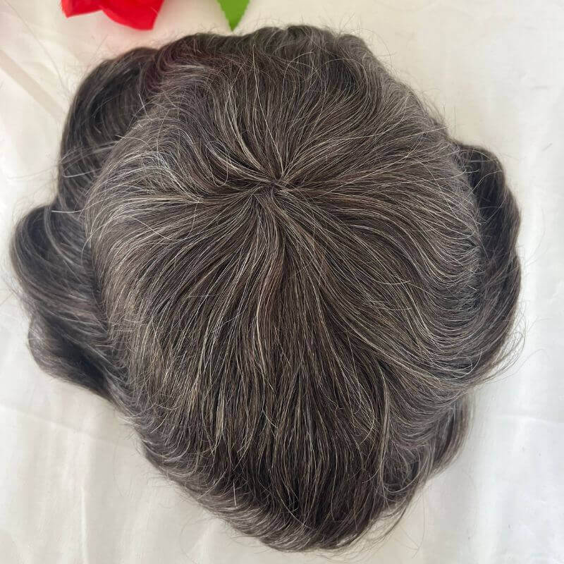 510# 90% Human #5 Brown Hair Mixed with 10% Synthetic White Hair Toupee For Men Mono Base with PU around Men's Hair System 10X8inch
