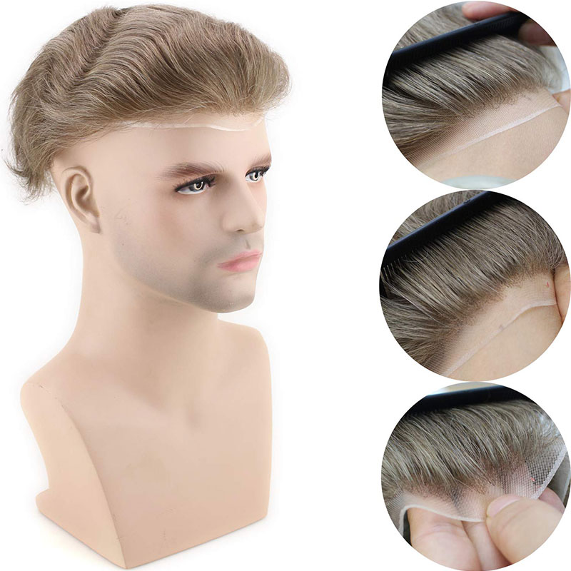 Hair System Thin Skin Men's Hair Replacement Toupee Real Human Hair Pieces for Men #7 Light Brown Color Base Size 10x8