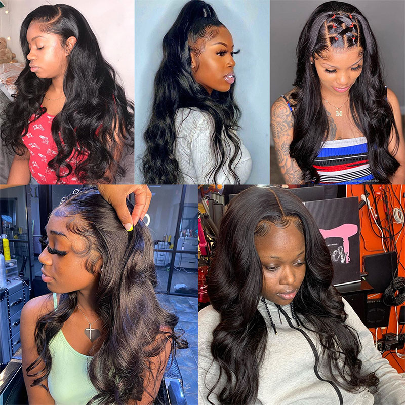 HD Transparent Human Hair Lace Wigs Body Wave 13x4 Lace Frontal Human Hair Wigs Brazilian Virgin Hair Pre Plucked Lace Wig For Women Natural Color 130%Density Voloria