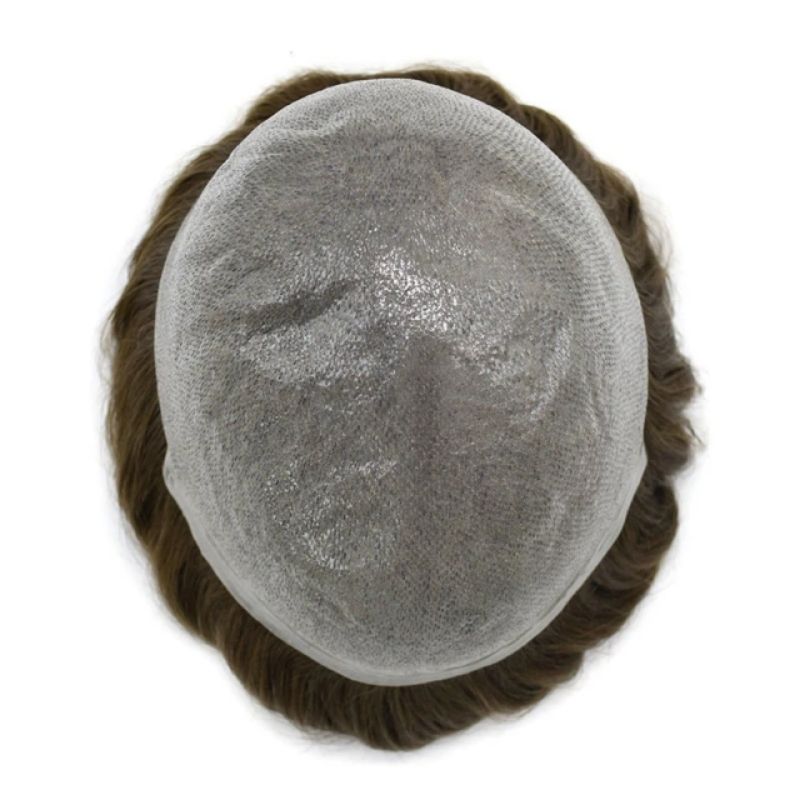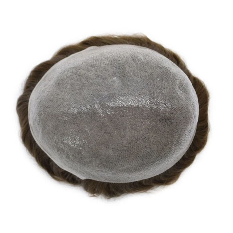 Men Toupee Handmade Hairpiece 0.04-0.06mm Full PU Stock Mens Toupee V-Loop Super Thin Full Skin Man Hair Transparent Poly Hair System 32mm Slight Wave 8x10 7# Brown