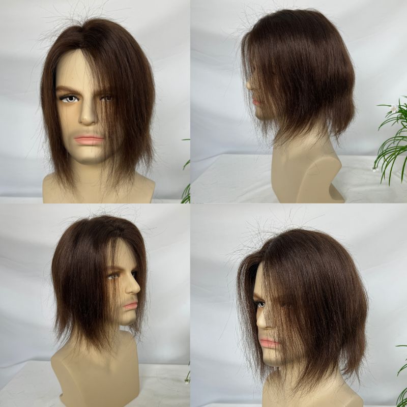 Pwigs Brown 3# Color Mono Base with PU Men's Toupee 100% Indian Human Hair System Npu 8x6 inch Base Size Toupee for Men Hair