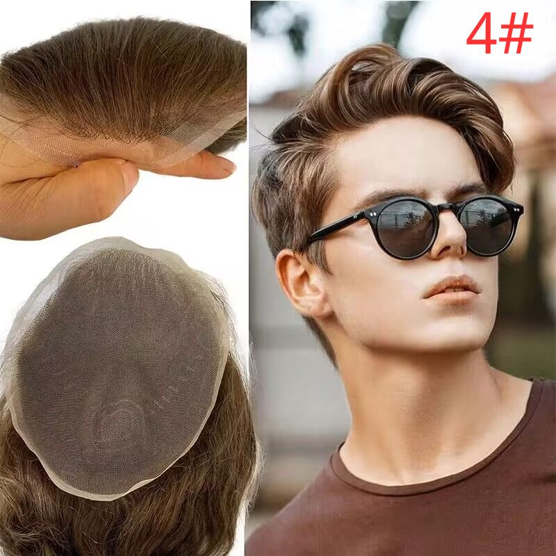 Toupee for Men Full Swiss Lace 100% Indian Human Hair for Men 7 Brown Color Hair System 10x8 Natural Hairline Men's Hair Replacement