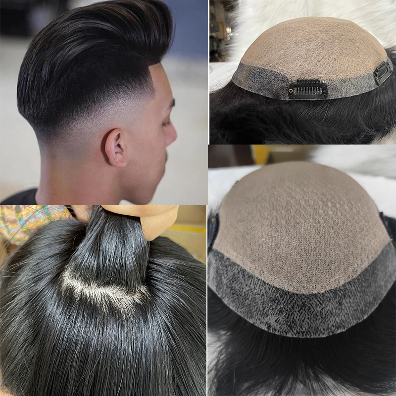 Wig Hair Replacement Silk Base Closure Men's Toupee Human Hair 130%Density Men Wigs Clip in Hair Toupee For Men 1B Color Natural Hairline